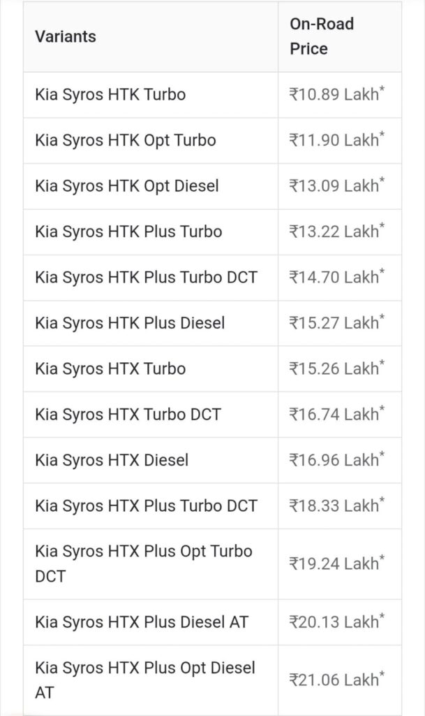 Kia Syros Price In Jaipur :